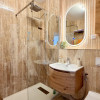 Dormitorul oferă intimitate și confort, fiind complet mobilat și pregătit pentru mutare imediată. Baia este amenajată modern, cu finisaje elegante și dotări de calitate.