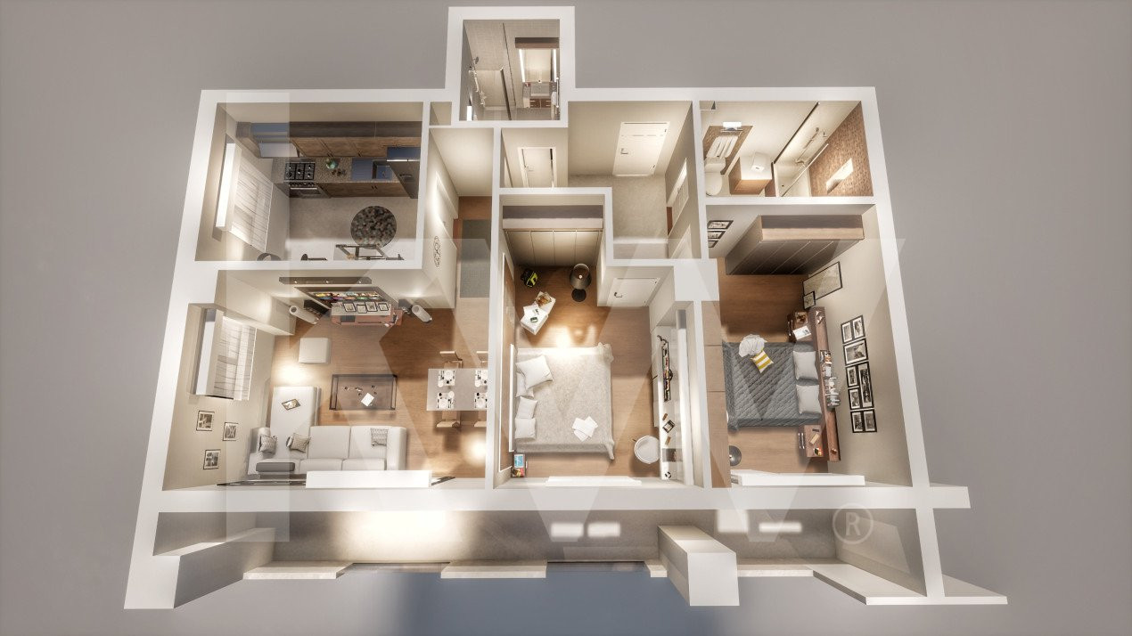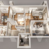 Apartamentul este compus din 3 camere și este compartimentat astfel:
