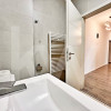 o baie mare cu cadă pentru momente de relaxare și un WC de serviciu pentru mai mult confort