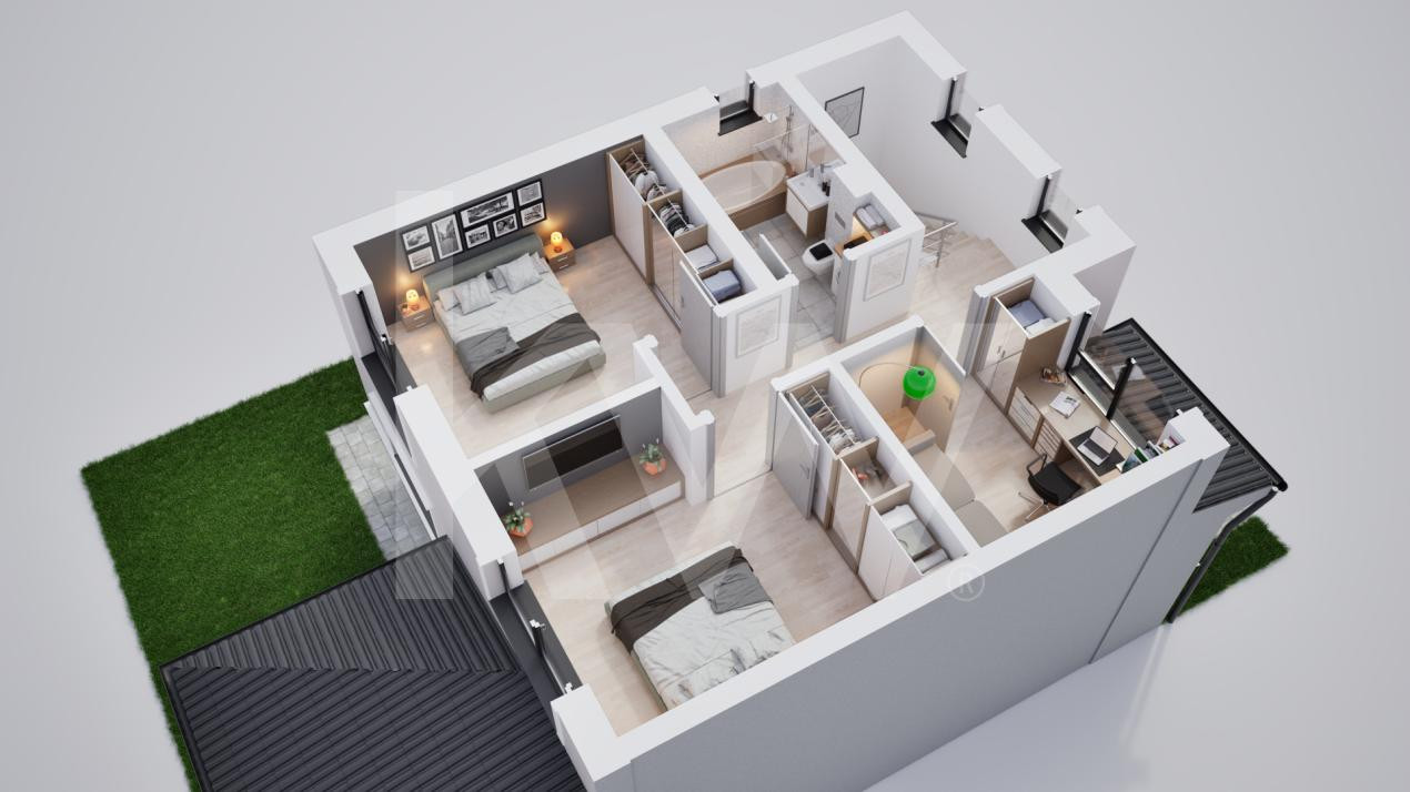 Locuințele vor fi livrate astfel: exterior la cheie și interior la gri avansat, oferindu-ți flexibilitate în amenajare.