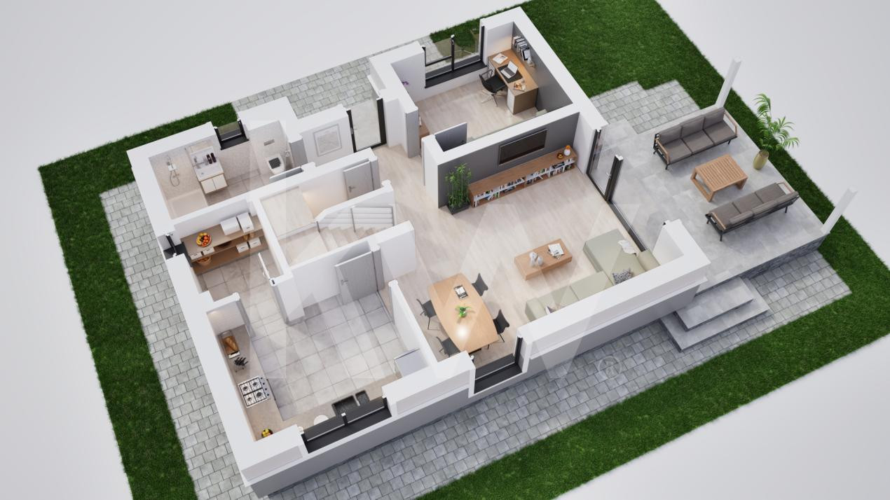 Locuințele vor fi livrate astfel: exterior la cheie și interior la gri avansat, oferindu-ți flexibilitate în amenajare.