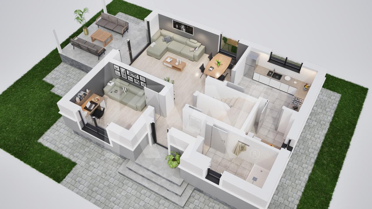 Imaginează-ți diminețile liniștite într-o casă nouă care oferă tot ce ai visat pentru familia ta. Cu 121 mp utili, Vila Single Tip 2 te întâmpină cu un living generos. Spațiul perfect pentru povești spuse în familie sau seri de relaxare. Terasa acoperită devine refugiul tău de liniște, indiferent de anotimp.