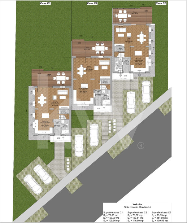 - Teren drept și plan, cu costuri de construcție reduse (cu 30% față de terenuri în pantă),